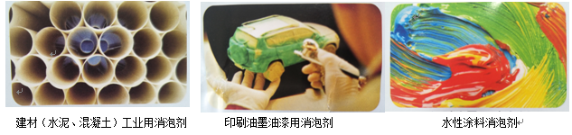 主要适用于建材、化工、油墨、油漆、水性涂料、陶瓷分切等方面的消泡和抑泡。